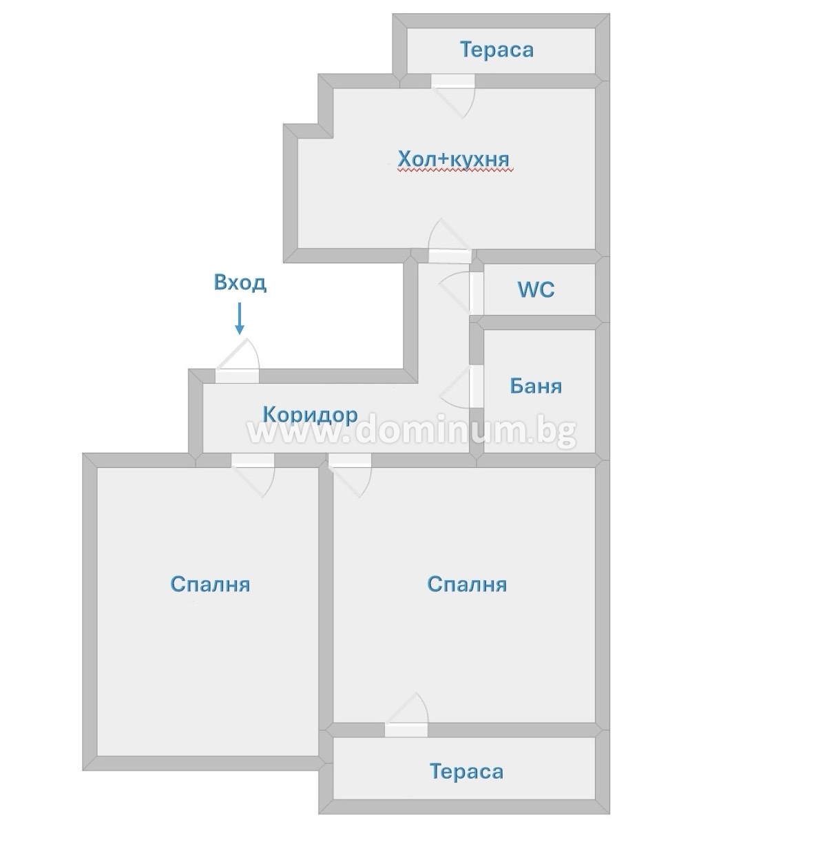 Разпределение: просторна дневна с кухня и трапезария, две отделни непреходни спални, баня с душ кабина, отделна тоалетна, килер/вграден гардероб в коридора;