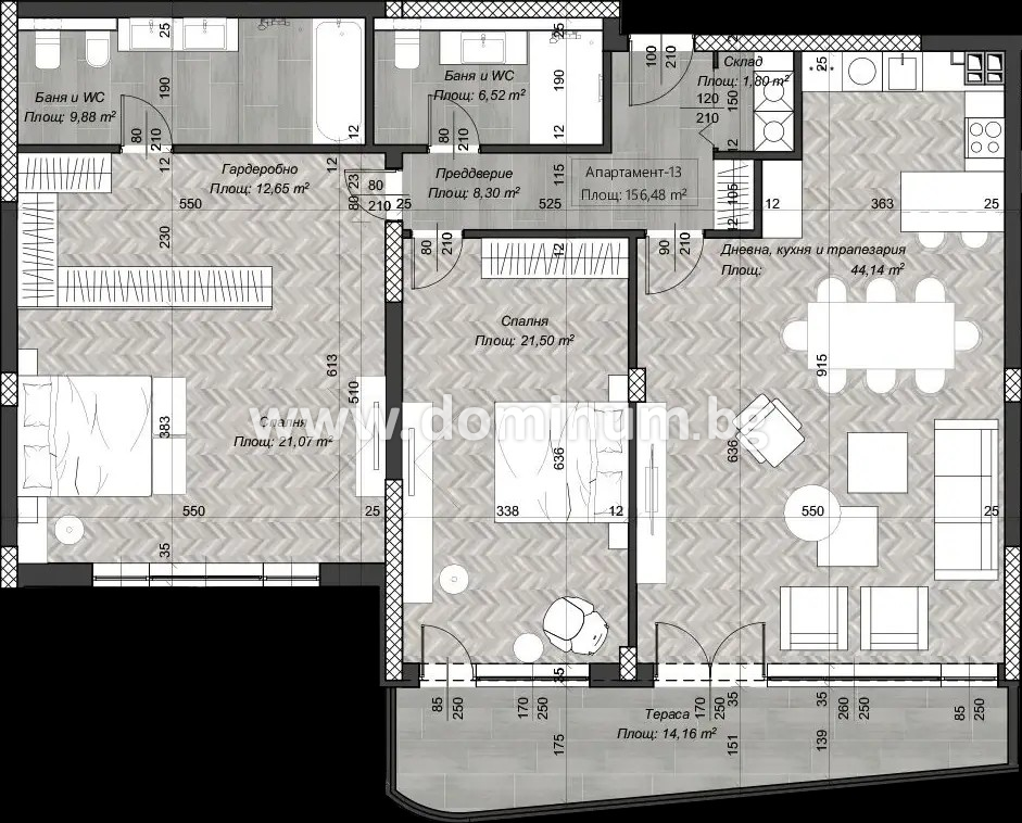 Тристаен апартамент | 4 | 160.88 кв. м. | 136.44 кв. м. | 0.00 кв. м. | 2250.00 EUR / кв.м | 361 980 EUR | ||
