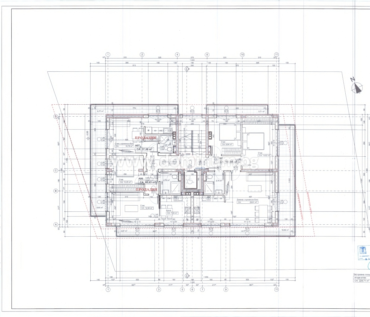 | Реф. № | Тип имот | Изложение | Етаж | Площ | Жил. площ | Общи части | Обзавеждане | Цена на кв.м. | Цена |